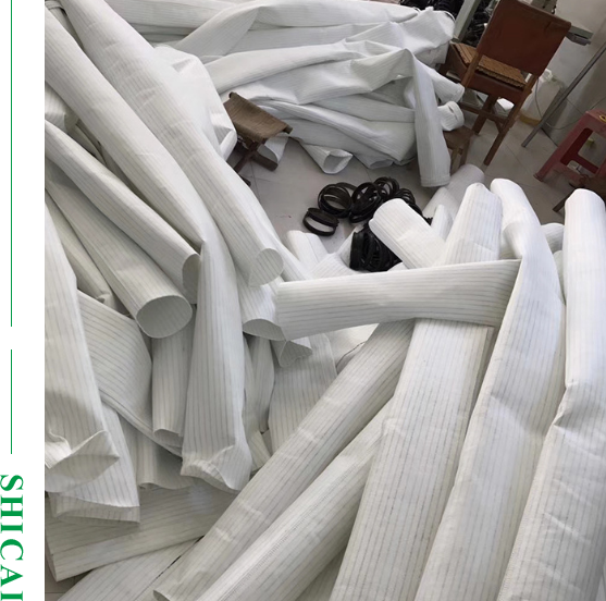 袋口采用彈性漲圈及同材質制作的鞍形墊(非橡膠圈),以免橡膠圈在高溫下老化而導致濾袋脫落;袋口縫合處采用錯位處理,以保證袋口與花板緊密貼合,避免粉塵從花板孔泄露。